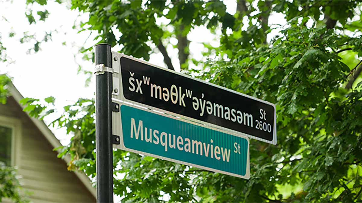 För första gången får en gata i Kanada ett namn på språket hunquminum.