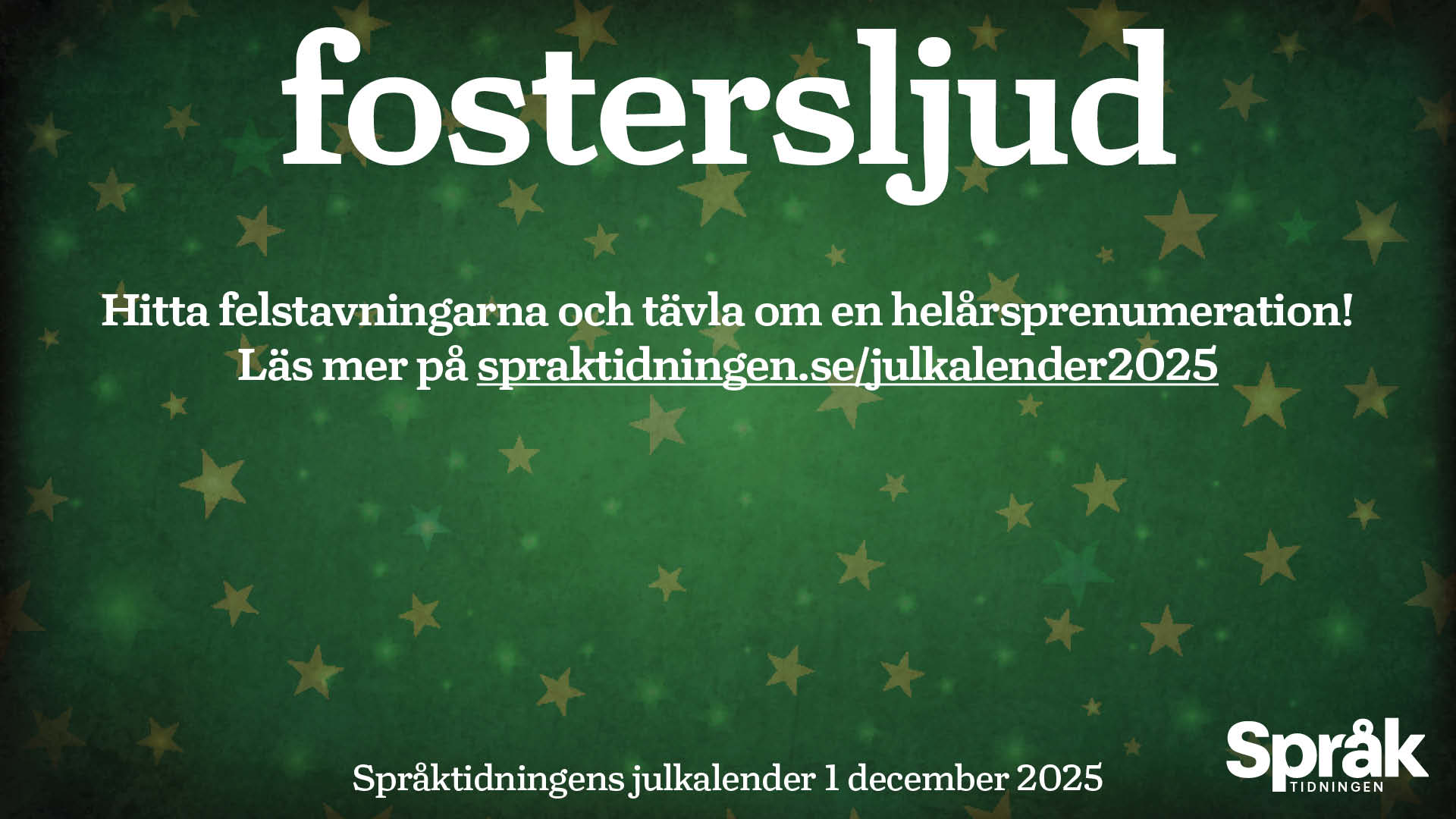 För femte året i följd är Språktidningens julkalender en felstavningskalender. Varje dag fram till julafton publicerar vi ett felstavat svenskt ord. I varje felstavat ord finns en bokstav som inte hör hemma där. Vi utgår från stavningen i Svenska Akademiens ordlista.