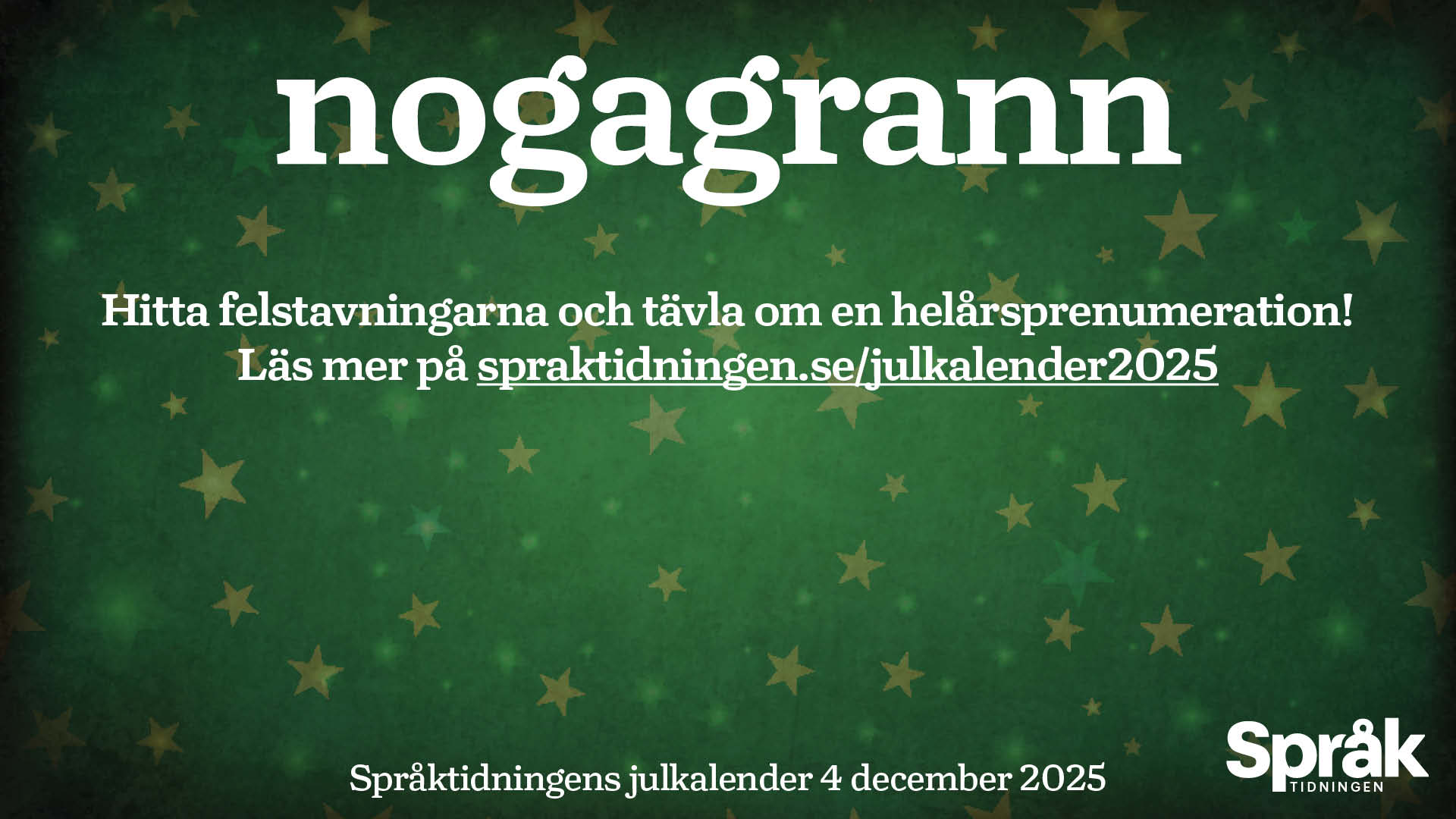För femte året i följd är Språktidningens julkalender en felstavningskalender. Varje dag fram till julafton publicerar vi ett felstavat svenskt ord.