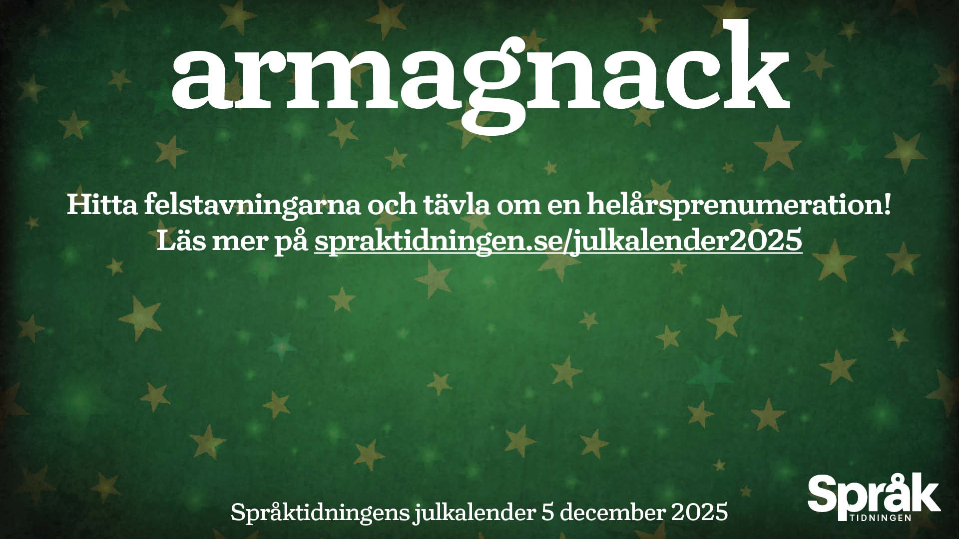 För femte året i följd är Språktidningens julkalender en felstavningskalender. Varje dag fram till julafton publicerar vi ett felstavat svenskt ord.