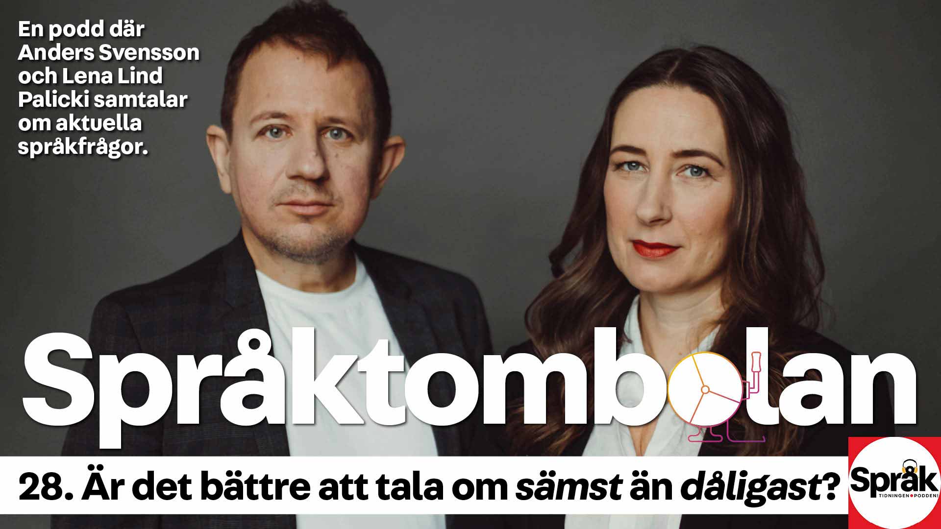 I det tjugoåttonde avsnittet av Språktombolan samtalar Lena Lind Palicki, chef för Språkrådet, och Anders Svensson, chefredaktör för Språktidningen, om olika aspekter på komparation av adjektiv.